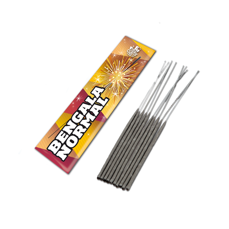Paquete con 10 bengalas de 17 cm que crean preciosos destellos en amarillo.